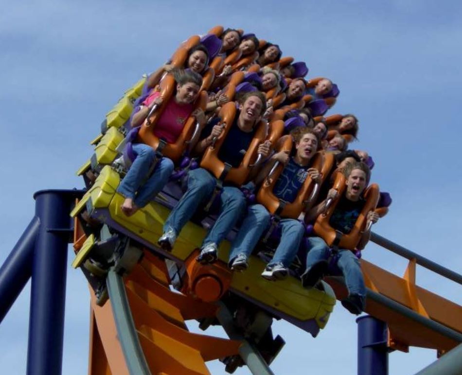 People who ride a roller-coaster are excited about their ongoing situation. Their overall emotion is a combination of feeling scared, and at the same time feeling safe in the confines of the roller-coaster cart and its safety belts. This is one of many examples of being aroused by a combination of two opposite emotions.